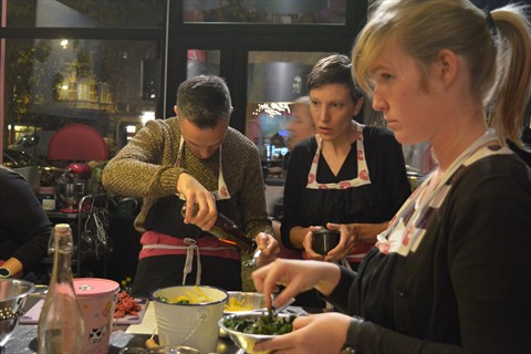 Sven, van VOKA, kwam voor de vierde keer bij ons. Dit keer koos zijn jong en dynamisch team voor de snelle versie van een quick lunch. Een twee uur durende kookworkshop waarbij de nadruk ligt op snel klaar te maken gerechten, die energie geven, gezond zijn en eventueel geschikt om mee te nemen naar het werk. Na de lunch spurtte het team de deur uit, op naar een volgende activiteit.